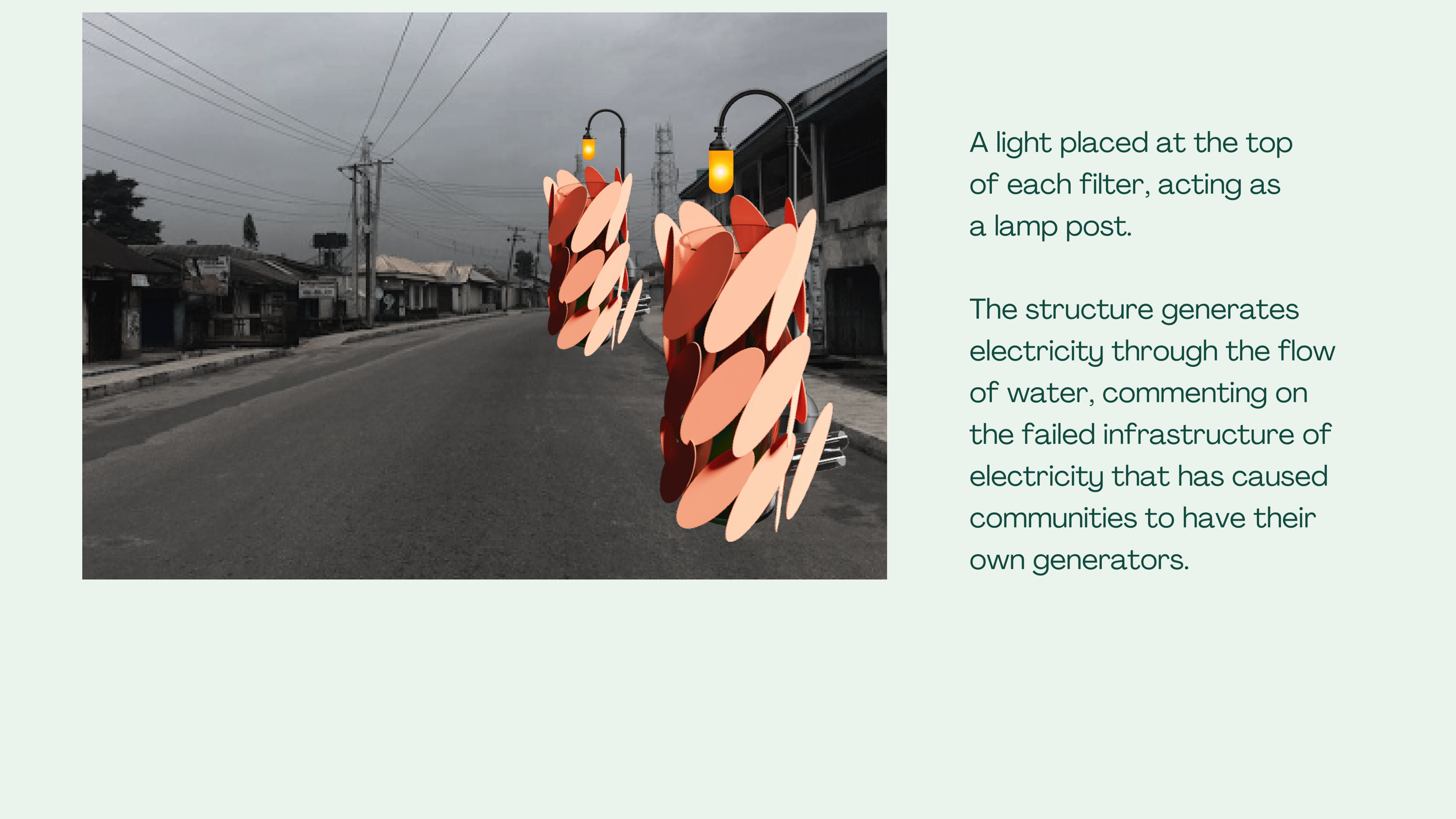 Pillar of Hope is an algae biofilter that leverages naturally occurring algae to treat polluted air and water and mitigate air-borne and water-borne illnesses caused by the oil and gas industry in Rivers State, Nigeria.